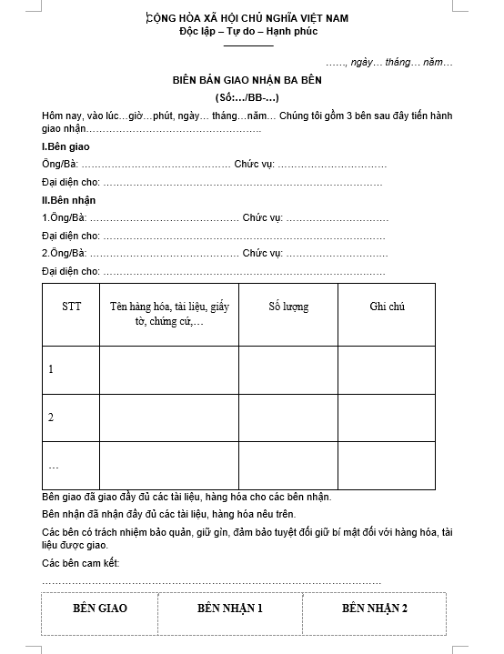 Trong một số trường hợp, việc giao hàng có sự tham gia của bên thứ ba như đơn vị vận chuyển hoặc trung gian phân phối, mẫu phiếu giao hàng cho 3 bên sẽ được sử dụng. Mẫu này thể hiện rõ vai trò và trách nhiệm của từng bên - bên bán, bên vận chuyển và bên nhận, nhằm hạn chế rủi ro, nhầm lẫn hoặc tranh chấp trong quá trình giao nhận. Đây là loại phiếu giao hàng chuyên biệt, thường được các doanh nghiệp thương mại điện tử, logistics hoặc phân phối hàng hóa sử dụng để đảm bảo tính minh bạch và thống nhất trong toàn bộ quy trình.