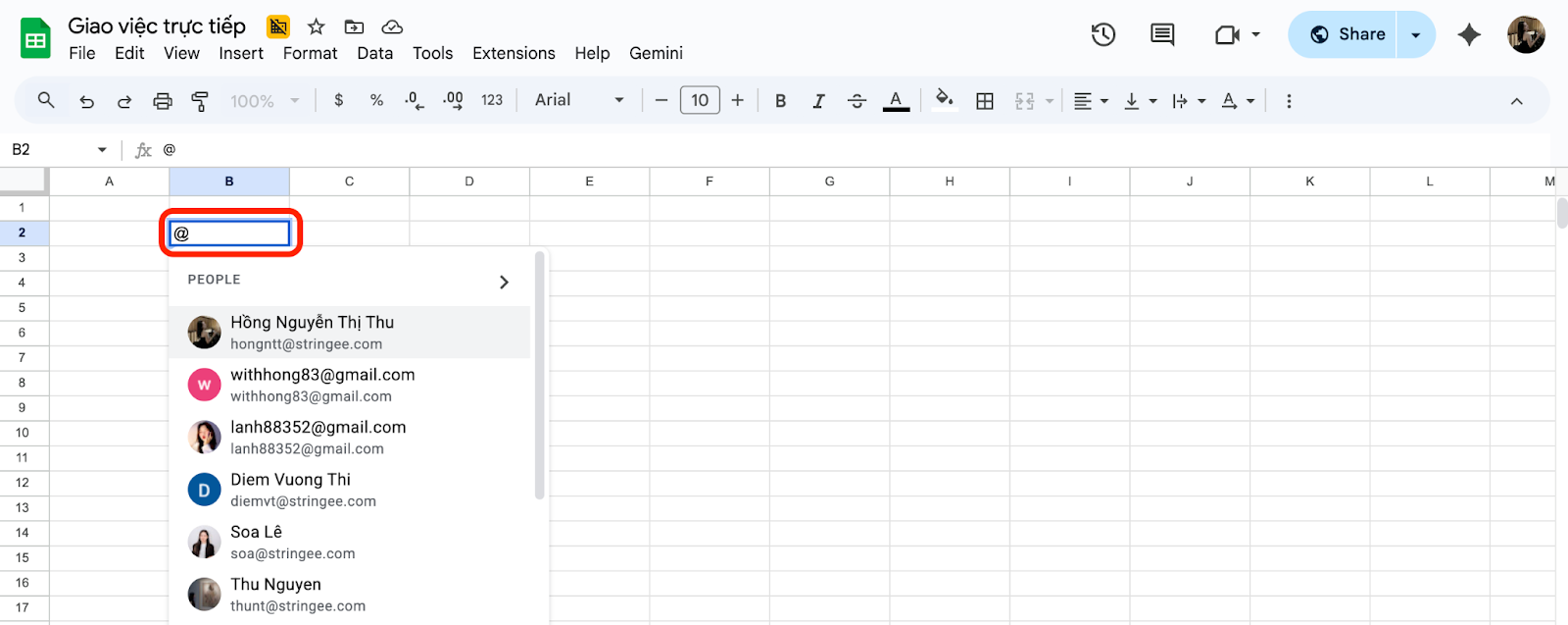 Google Sheet cho phép bạn giao việc ngay trong bảng mà không cần thêm công cụ quản lý riêng. Mỗi thành viên có thể cập nhật tiến độ trực tiếp, giúp nhóm nắm bắt được trạng thái công việc theo thời gian thực. Cách làm này đặc biệt hiệu quả với các nhóm nhỏ hoặc dự án ngắn hạn cần sự linh hoạt.