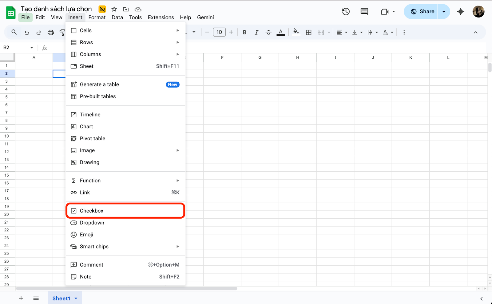Checkbox là cách đơn giản và trực quan để đánh dấu tiến độ. Khi công việc hoàn thành, tích chọn sẽ giúp người quản lý dễ dàng theo dõi tỷ lệ hoàn thành mà không cần nhập văn bản thủ công.