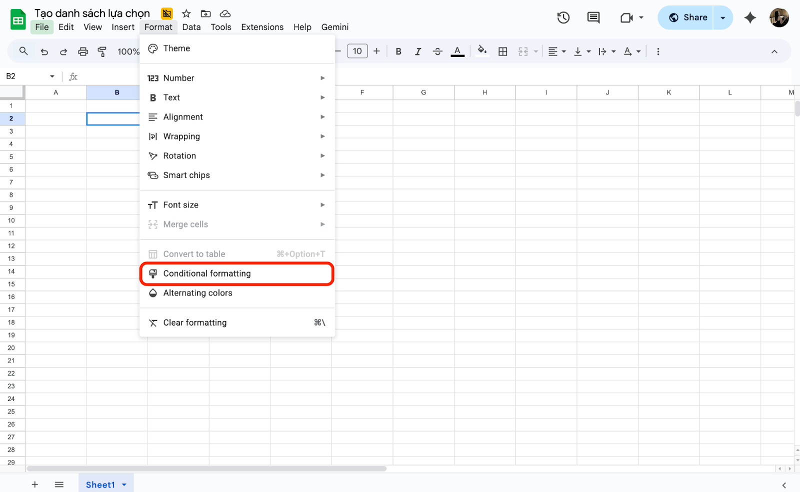 Google Sheet cho phép người dùng thiết lập quy tắc theo dõi theo màu sắc. Dựa vào việc thiết lập quy tắc, người dùng có thể dễ dàng theo dõi tiến độ công việc mà không cần kiểm tra từng đầu việc.