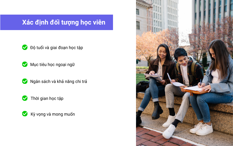 Ngân sách và khả năng chi trả: Mỗi nhóm học viên có mức chi phí khác nhau, việc xác định giúp trung tâm thiết kế gói học phí hợp lý.