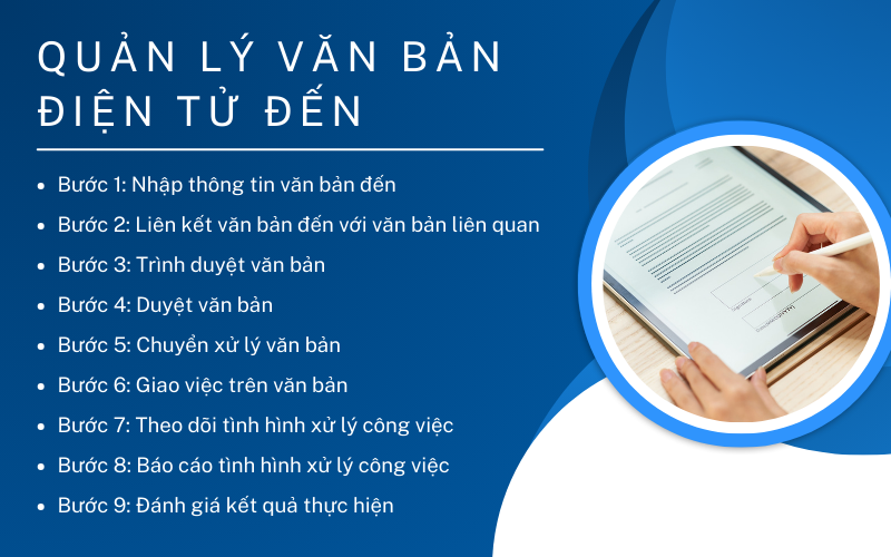 Quy trình quản lý văn bản điện tử đến thường được triển khai theo các bước sau: