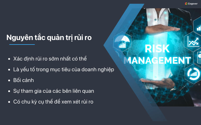 Quản trị rủi ro không chỉ là công việc kỹ thuật mà còn là nguyên tắc quản lý xuyên suốt, giúp doanh nghiệp phát triển bền vững, chủ động phòng ngừa và ứng phó với những tình huống bất lợi. Để thực hiện hiệu quả, doanh nghiệp cần tuân thủ những nguyên tắc cơ bản sau: