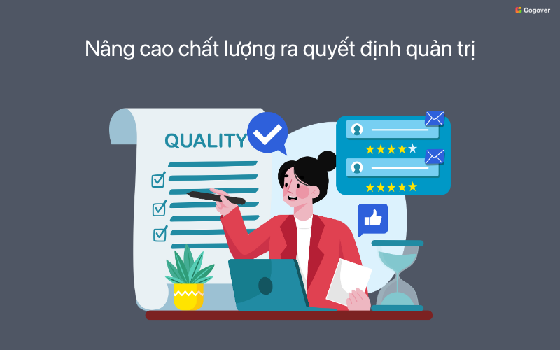 Quản lý rủi ro giúp các nhà quản trị có cái nhìn toàn diện và thực tế hơn khi đưa ra quyết định. Việc cân nhắc song song giữa cơ hội và rủi ro cho phép doanh nghiệp đánh giá chính xác mức độ ảnh hưởng của từng lựa chọn, từ đó đưa ra quyết định dựa trên dữ liệu và mức độ chấp nhận rủi ro cụ thể. Nhờ vậy, các quyết định chiến lược như đầu tư, mở rộng quy mô hay thay đổi mô hình kinh doanh sẽ trở nên thận trọng và hiệu quả hơn.
