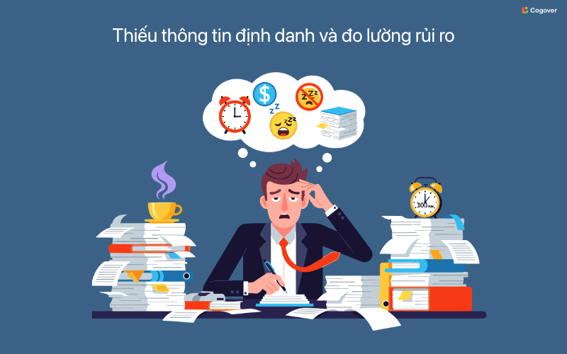 Một trong những khó khăn lớn là doanh nghiệp không có đủ thông tin để nhận diện và đánh giá rủi ro một cách chính xác. Khi dữ liệu bị thiếu, lỗi thời hoặc không đồng bộ, việc đo lường mức độ rủi ro trở nên khó khăn và quyết định dựa trên giả định sẽ tăng nguy cơ sai lầm. Trong thực tế, nhiều doanh nghiệp gặp phải tình trạng không biết chính xác rủi ro nào quan trọng nhất, hoặc thiếu số liệu về tác động tài chính, vận hành hay thị trường, dẫn đến việc phân bổ nguồn lực không hiệu quả.