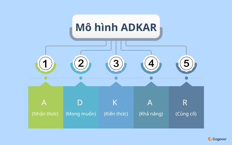 Mô hình ADKAR tập trung vào yếu tố con người trong quản trị sự thay đổi, nhấn mạnh rằng sự thay đổi chỉ thành công khi từng cá nhân thay đổi thành công. ADKAR là viết tắt của năm yếu tố cốt lõi: