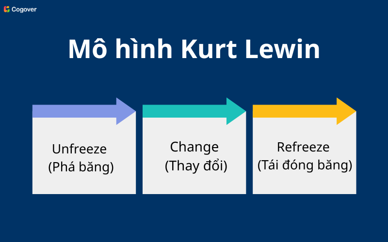 Mô hình Kurt Lewin là một trong những mô hình quản trị sự thay đổi kinh điển và dễ hiểu nhất. Mô hình này chia quá trình thay đổi thành ba giai đoạn chính, giúp doanh nghiệp kiểm soát sự chuyển đổi từ trạng thái cũ sang trạng thái mới.