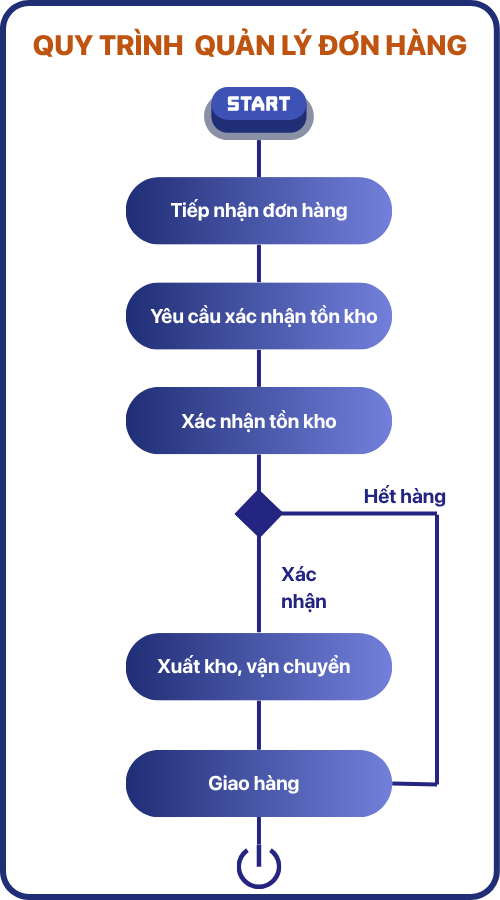 Đây là một trong những quy trình quan trọng nhất, thể hiện sự liên kết giữa phòng Kinh doanh, Kế toán, Kho và Hậu cần. Quy trình thường bắt đầu từ khâu tiếp nhận khách hàng tiềm năng, chăm sóc, báo giá, ký hợp đồng cho đến bàn giao sản phẩm hoặc dịch vụ. Khi các phòng ban cùng chia sẻ dữ liệu trên một nền tảng chung, việc theo dõi tiến độ, cập nhật tình trạng đơn hàng và chăm sóc khách hàng sau bán trở nên nhanh chóng, chính xác hơn, đồng thời tránh được tình trạng thất thoát thông tin.