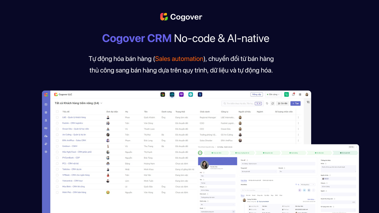 8. Tự động hóa bán hàng với Cogover CRM No-code & AI-native