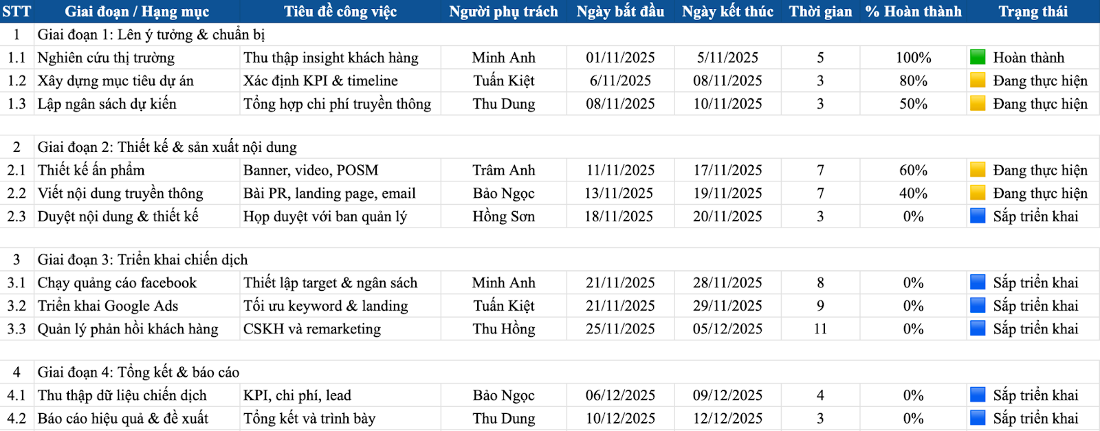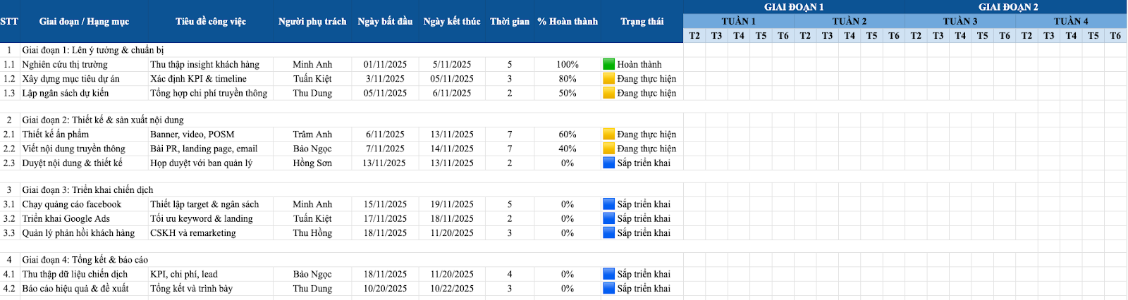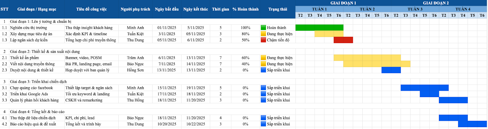Tốn thời gian cập nhật thủ công: Nếu làm bằng Excel, việc chỉnh sửa hoặc thay đổi timeline đòi hỏi công sức đáng kể.