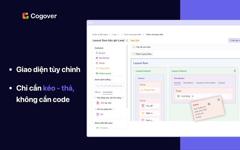 Tính năng nổi bật của Cogover CRM No-code/AI: