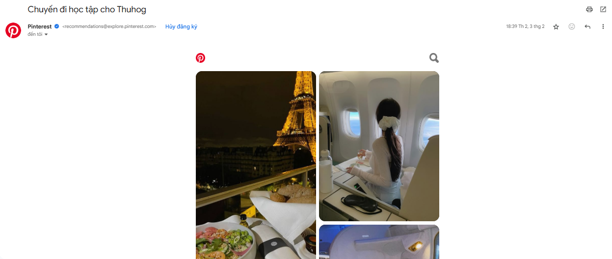Pinterest được xem là một trong những thương hiệu tận dụng email marketing hiệu quả nhất để duy trì sự gắn kết với người dùng. Thay vì gửi email quảng cáo đơn thuần, Pinterest áp dụng chiến lược cá nhân hóa dựa trên hành vi: