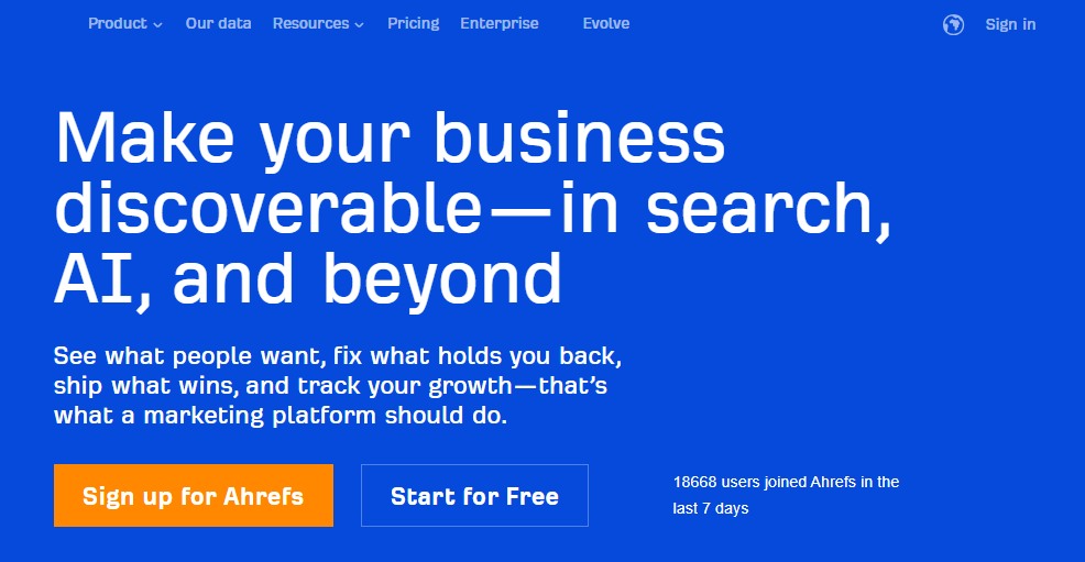 Điểm đáng chú ý là Ahrefs không chỉ dừng lại ở việc viết blog, mà còn tối ưu trải nghiệm người dùng trên website: giao diện gọn gàng, tốc độ tải nhanh, và mỗi bài viết đều có CTA rõ ràng dẫn khách hàng sang trang dùng thử sản phẩm.