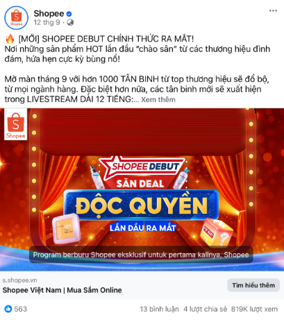 Bài chạy quảng cáo trên Facebook của Shopee đạt gần 1M lượt xem