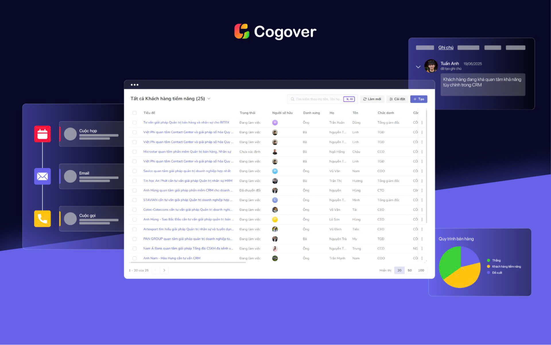 Để triển khai hiệu quả như vậy, doanh nghiệp cần một nền tảng có khả năng quản lý dữ liệu tập trung, tích hợp đa kênh và tự động hóa quy trình. Cogover CRM chính là giải pháp đáp ứng trọn vẹn: từ quản lý khách hàng 360 độ, cá nhân hóa trải nghiệm bằng AI cho đến thiết lập automation marketing & sales. Nhờ đó, doanh nghiệp có thể biến công nghệ thành lợi thế thực sự trong chiến lược thu hút và phát triển khách hàng.