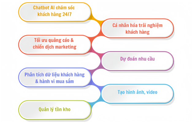 AI không chỉ là khái niệm mang tính xu hướng mà đã và đang được ứng dụng vào rất nhiều hoạt động trong bán hàng online. Từ chăm sóc khách hàng, cá nhân hóa trải nghiệm cho đến tối ưu quảng cáo, phân tích dữ liệu hay quản lý tồn kho, AI đều có thể mang lại hiệu quả rõ rệt. Dưới đây là 7 ứng dụng AI phổ biến nhất mà doanh nghiệp có thể triển khai, kèm theo các công cụ AI tiêu biểu để hỗ trợ thực tế.