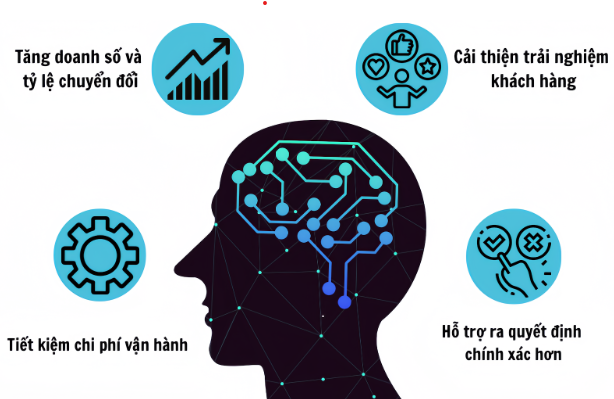 Tăng doanh số và tỷ lệ chuyển đổi: Nhờ cá nhân hóa trải nghiệm và tối ưu chiến dịch marketing, AI giúp doanh nghiệp tiếp cận đúng khách hàng, đúng thời điểm và đưa ra gợi ý sản phẩm phù hợp. Điều này làm tăng khả năng chốt đơn và doanh thu. Ví dụ: các sàn thương mại điện tử lớn như Shopee, Lazada đã tăng mạnh tỷ lệ mua lại nhờ AI gợi ý sản phẩm.